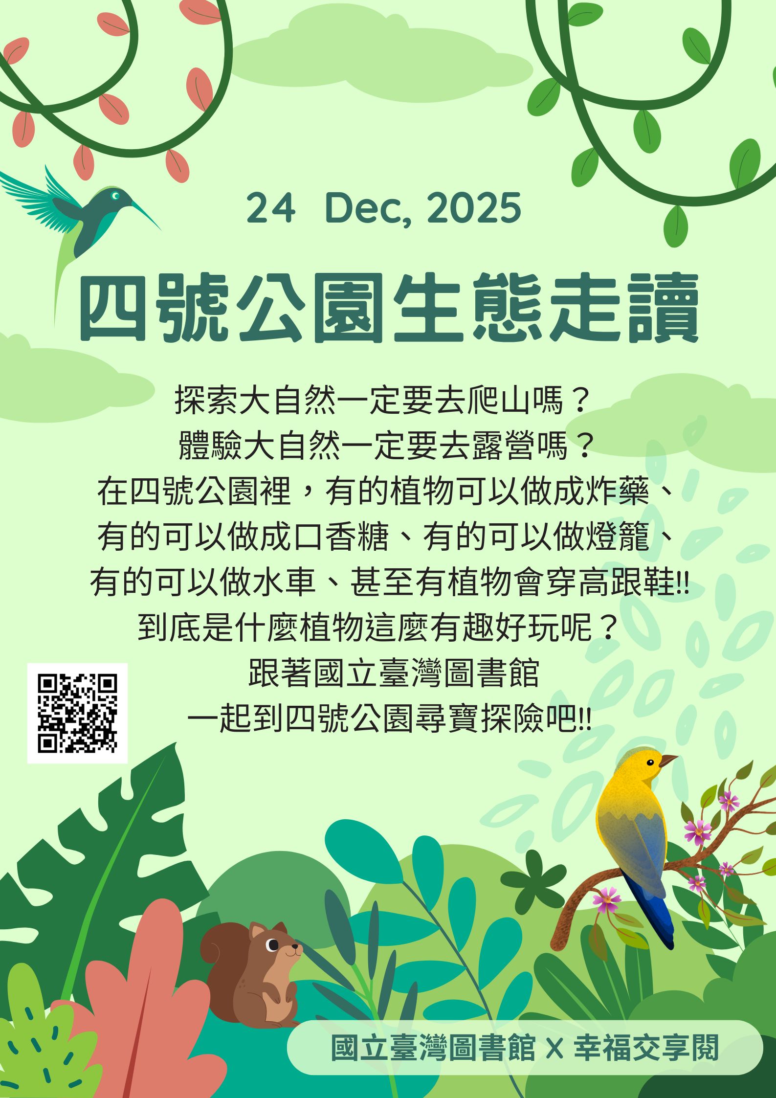 🏡地點:本館1樓簡報室(開場簡介)、四號公園